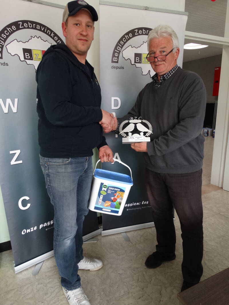 De winnaar S. Daeveloose ontvangt zijn prijs uit de handen van de voorzitter F. Janssens